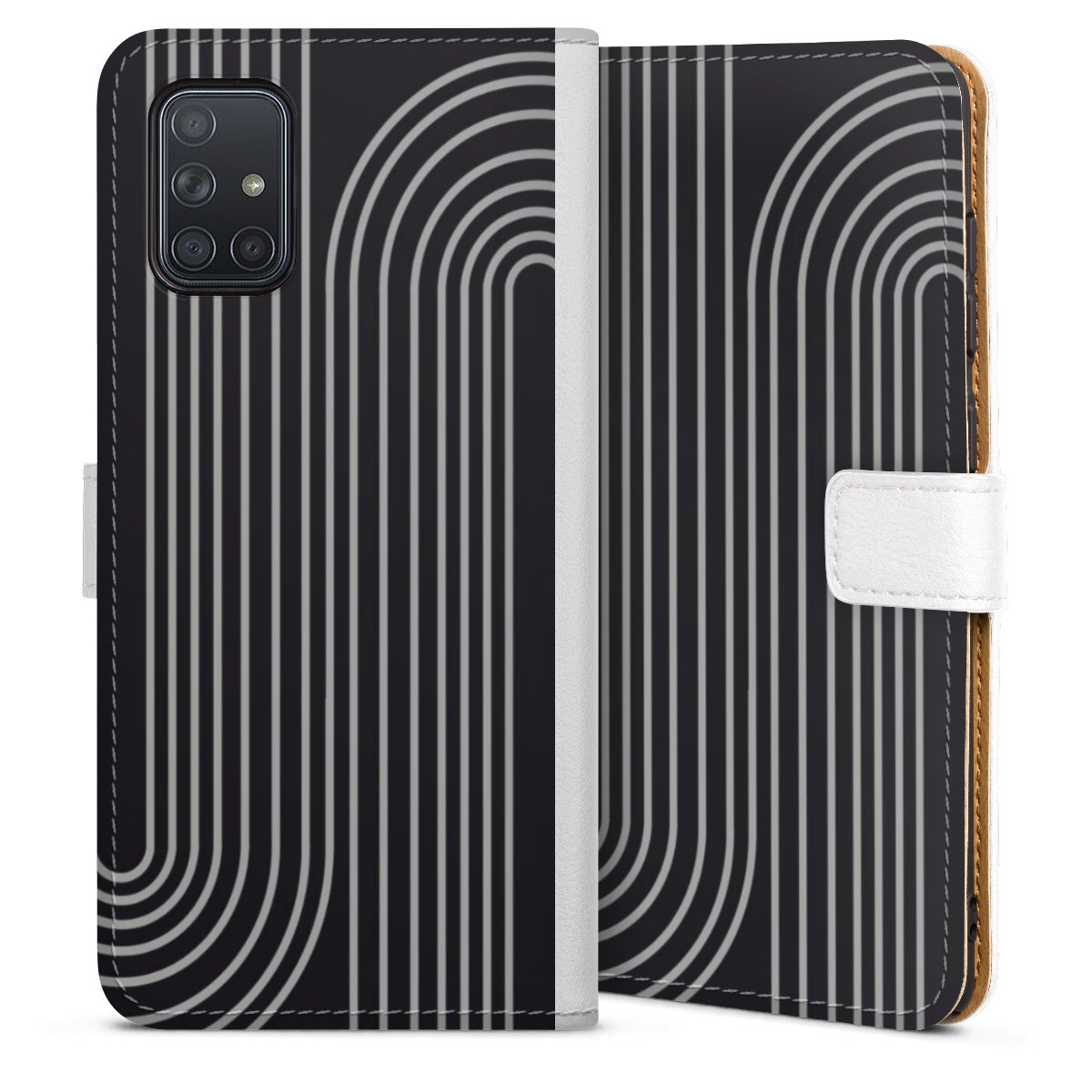 For our Sideflip Case we are using our advanced direct printing technology. The back and frontside are fully printabale, the inside of the phone bag is left unprinted. You can order the phone case without print, printed completely or also with a partial print.