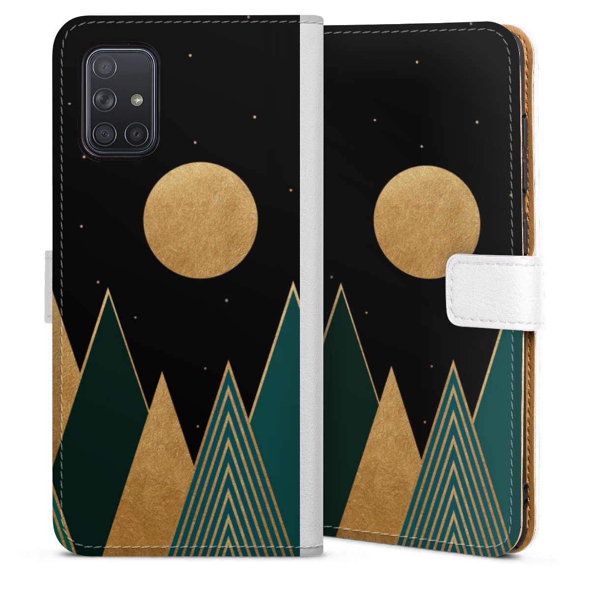 For our Sideflip Case we are using our advanced direct printing technology. The back and frontside are fully printabale, the inside of the phone bag is left unprinted. You can order the phone case without print, printed completely or also with a partial print.