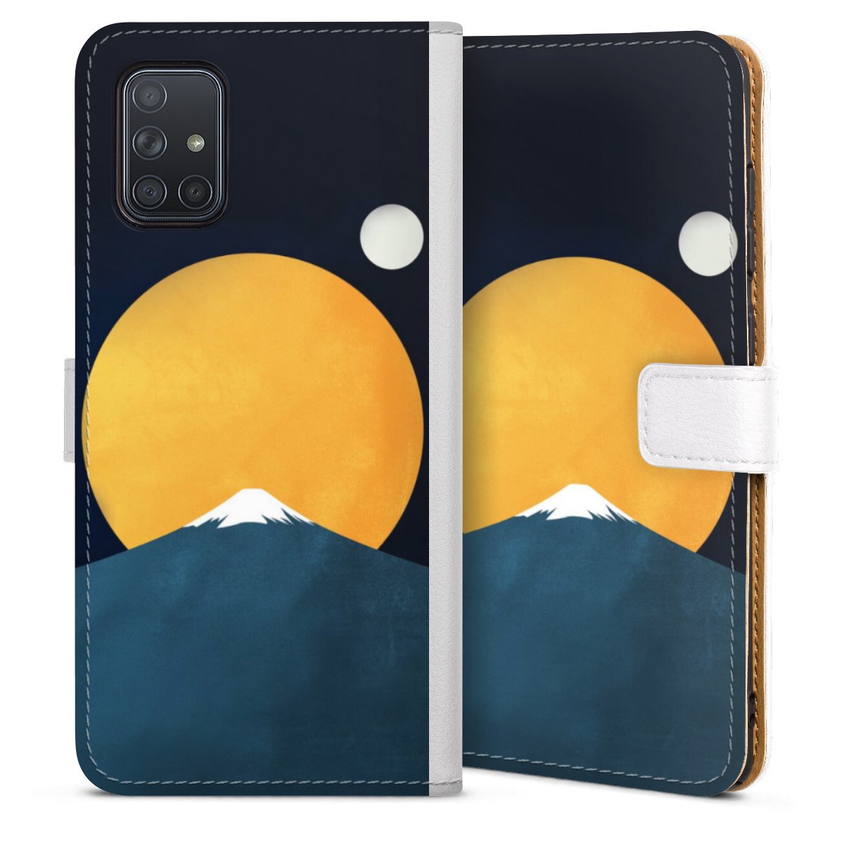 For our Sideflip Case we are using our advanced direct printing technology. The back and frontside are fully printabale, the inside of the phone bag is left unprinted. You can order the phone case without print, printed completely or also with a partial print.