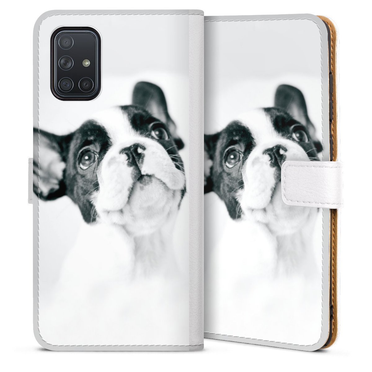 For our Sideflip Case we are using our advanced direct printing technology. The back and frontside are fully printabale, the inside of the phone bag is left unprinted. You can order the phone case without print, printed completely or also with a partial print.