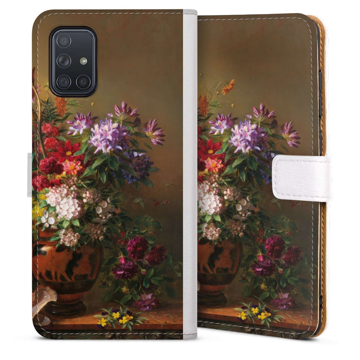 For our Sideflip Case we are using our advanced direct printing technology. The back and frontside are fully printabale, the inside of the phone bag is left unprinted. You can order the phone case without print, printed completely or also with a partial print.