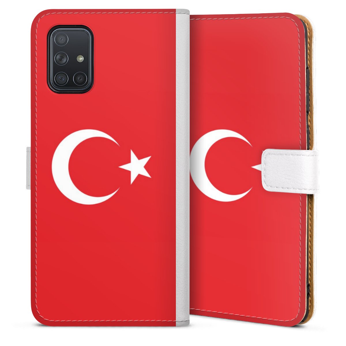 For our Sideflip Case we are using our advanced direct printing technology. The back and frontside are fully printabale, the inside of the phone bag is left unprinted. You can order the phone case without print, printed completely or also with a partial print.