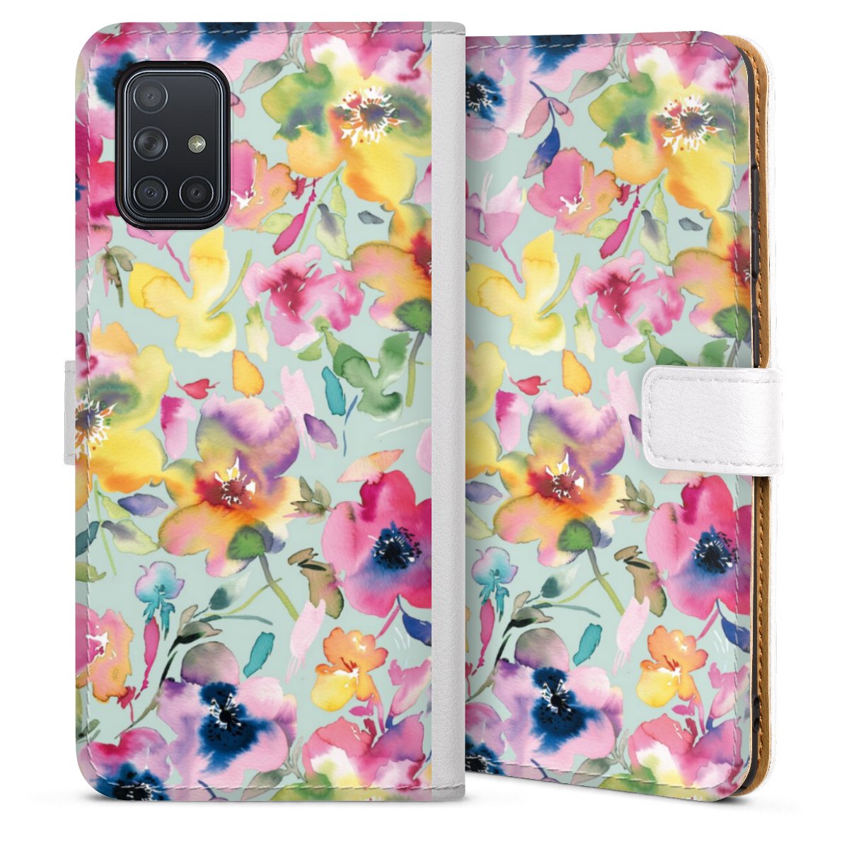 For our Sideflip Case we are using our advanced direct printing technology. The back and frontside are fully printabale, the inside of the phone bag is left unprinted. You can order the phone case without print, printed completely or also with a partial print.