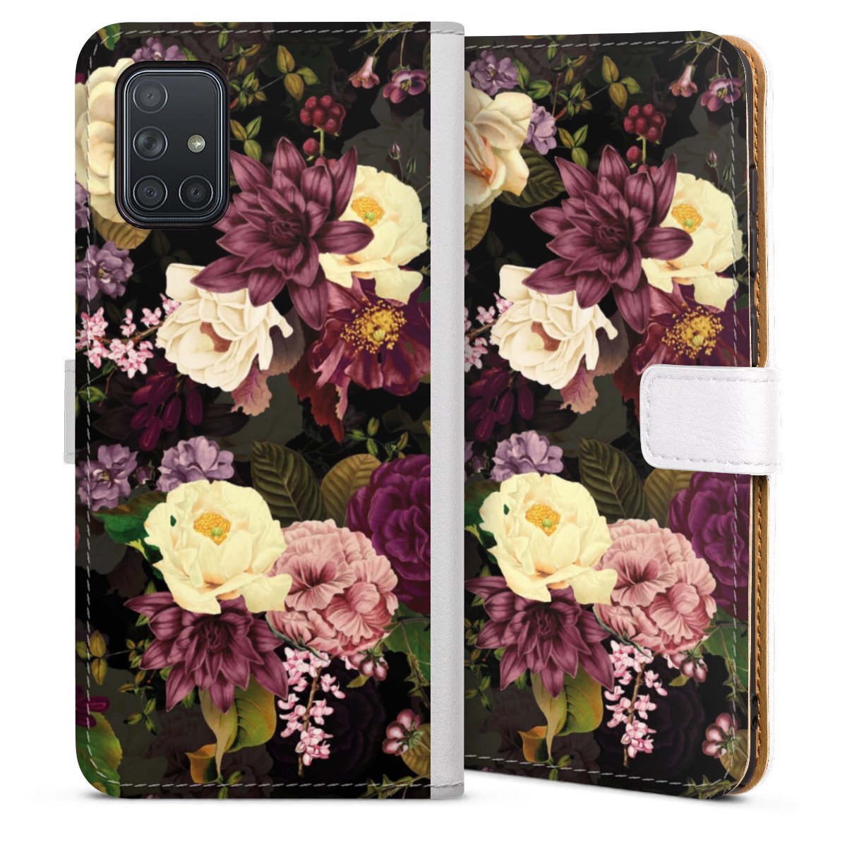 For our Sideflip Case we are using our advanced direct printing technology. The back and frontside are fully printabale, the inside of the phone bag is left unprinted. You can order the phone case without print, printed completely or also with a partial print.