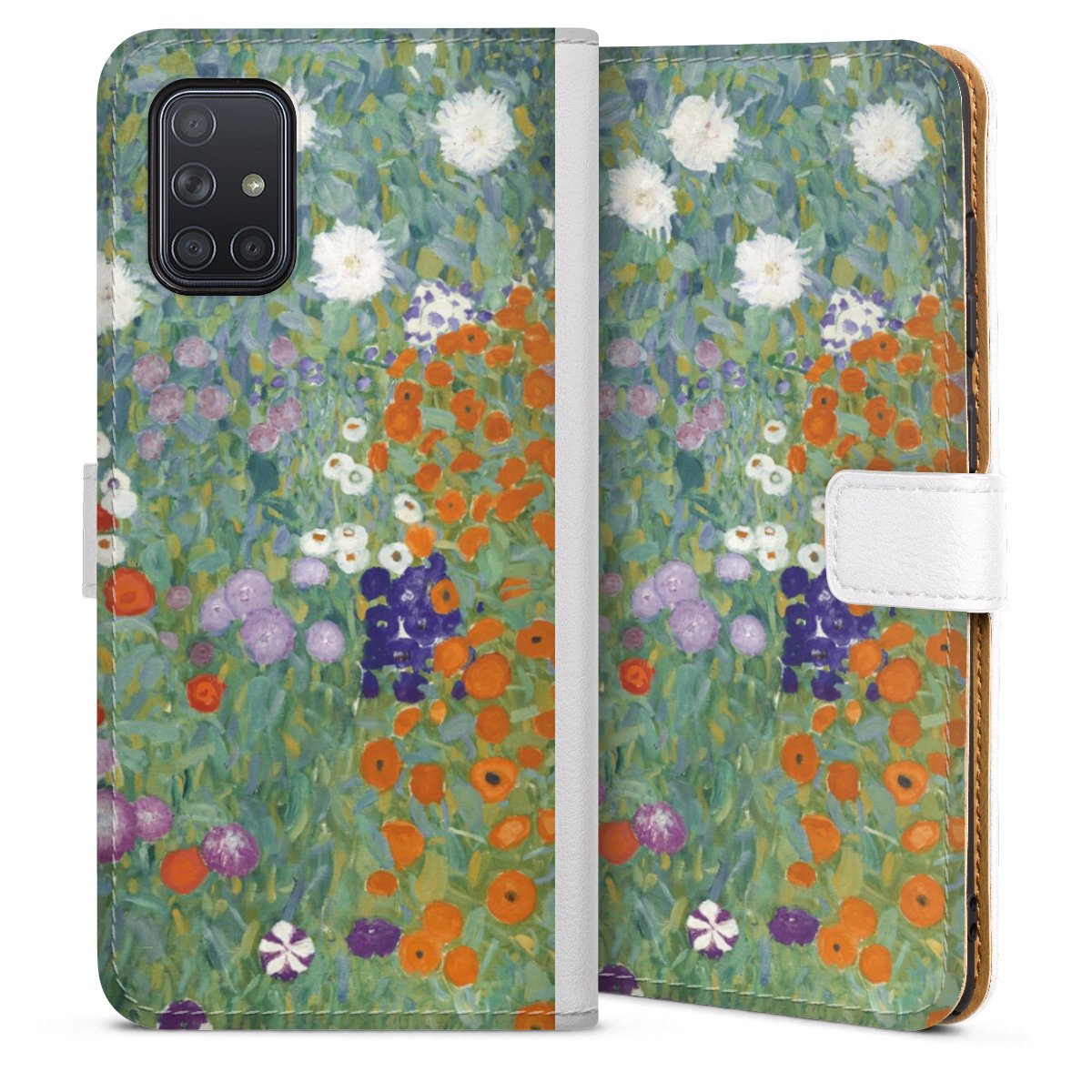For our Sideflip Case we are using our advanced direct printing technology. The back and frontside are fully printabale, the inside of the phone bag is left unprinted. You can order the phone case without print, printed completely or also with a partial print.