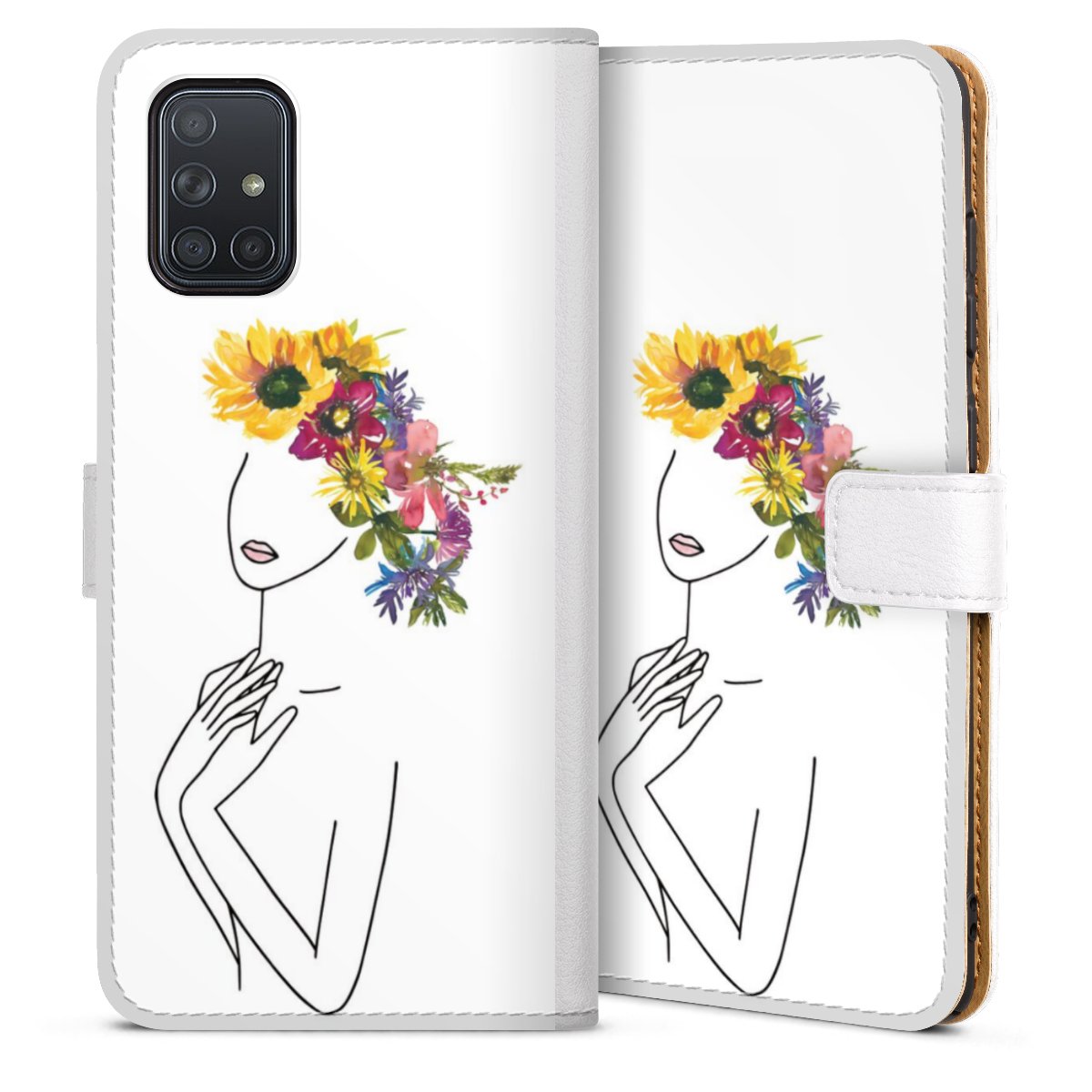 For our Sideflip Case we are using our advanced direct printing technology. The back and frontside are fully printabale, the inside of the phone bag is left unprinted. You can order the phone case without print, printed completely or also with a partial print.