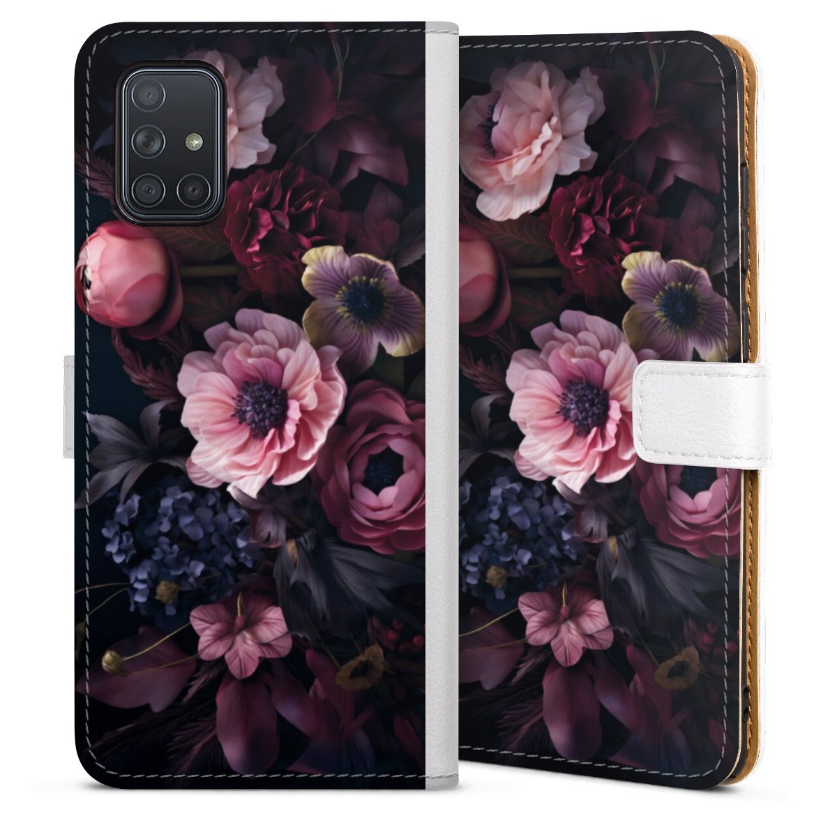 For our Sideflip Case we are using our advanced direct printing technology. The back and frontside are fully printabale, the inside of the phone bag is left unprinted. You can order the phone case without print, printed completely or also with a partial print.