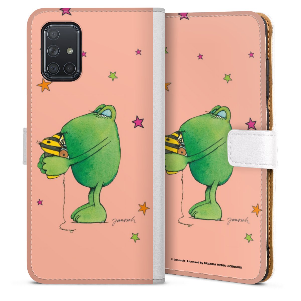 For our Sideflip Case we are using our advanced direct printing technology. The back and frontside are fully printabale, the inside of the phone bag is left unprinted. You can order the phone case without print, printed completely or also with a partial print.