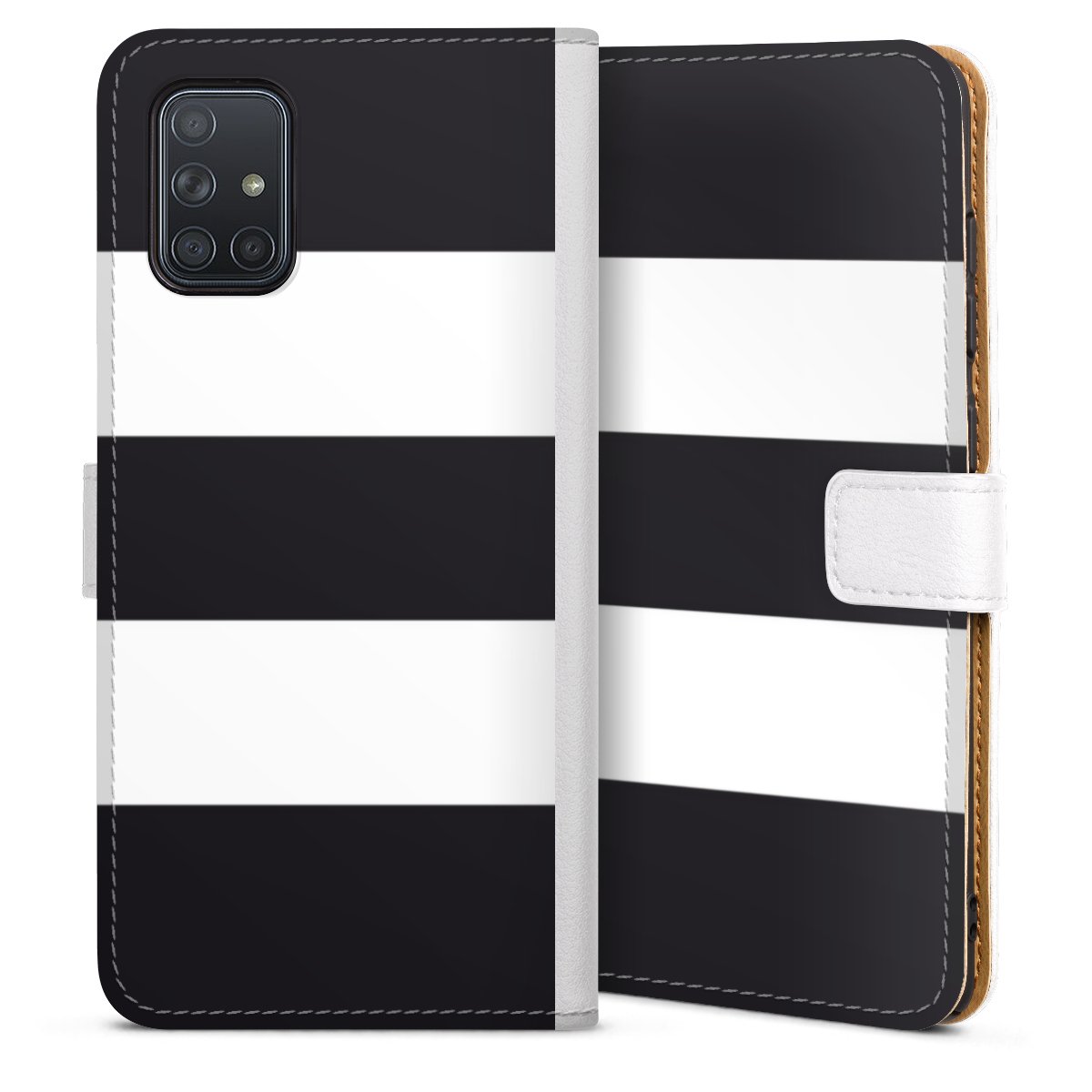 For our Sideflip Case we are using our advanced direct printing technology. The back and frontside are fully printabale, the inside of the phone bag is left unprinted. You can order the phone case without print, printed completely or also with a partial print.