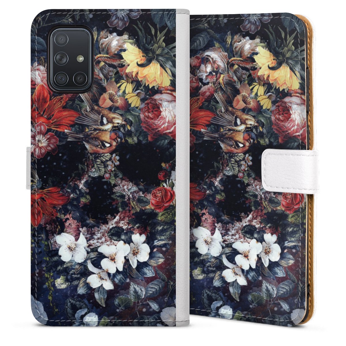 For our Sideflip Case we are using our advanced direct printing technology. The back and frontside are fully printabale, the inside of the phone bag is left unprinted. You can order the phone case without print, printed completely or also with a partial print.