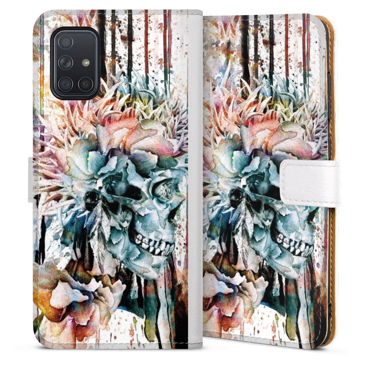 For our Sideflip Case we are using our advanced direct printing technology. The back and frontside are fully printabale, the inside of the phone bag is left unprinted. You can order the phone case without print, printed completely or also with a partial print.