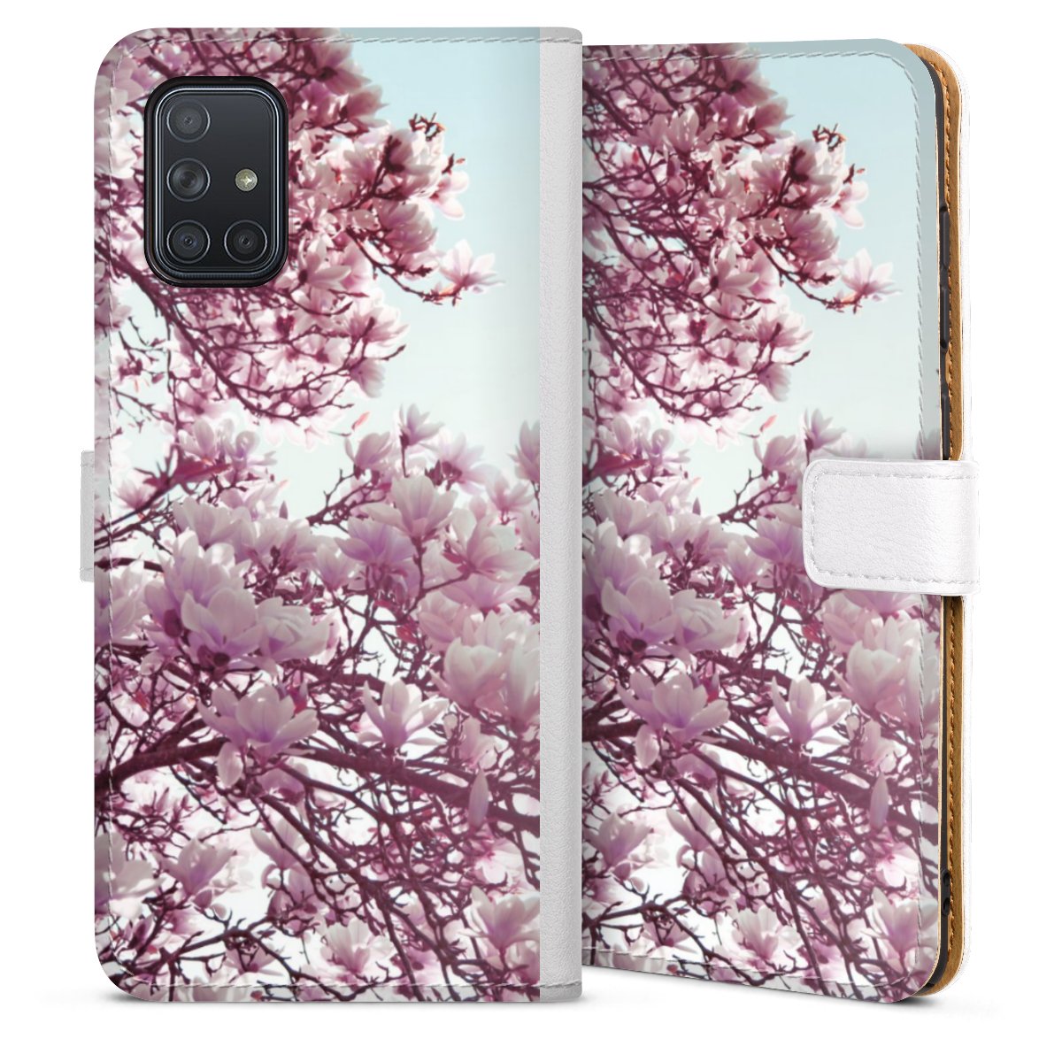 For our Sideflip Case we are using our advanced direct printing technology. The back and frontside are fully printabale, the inside of the phone bag is left unprinted. You can order the phone case without print, printed completely or also with a partial print.