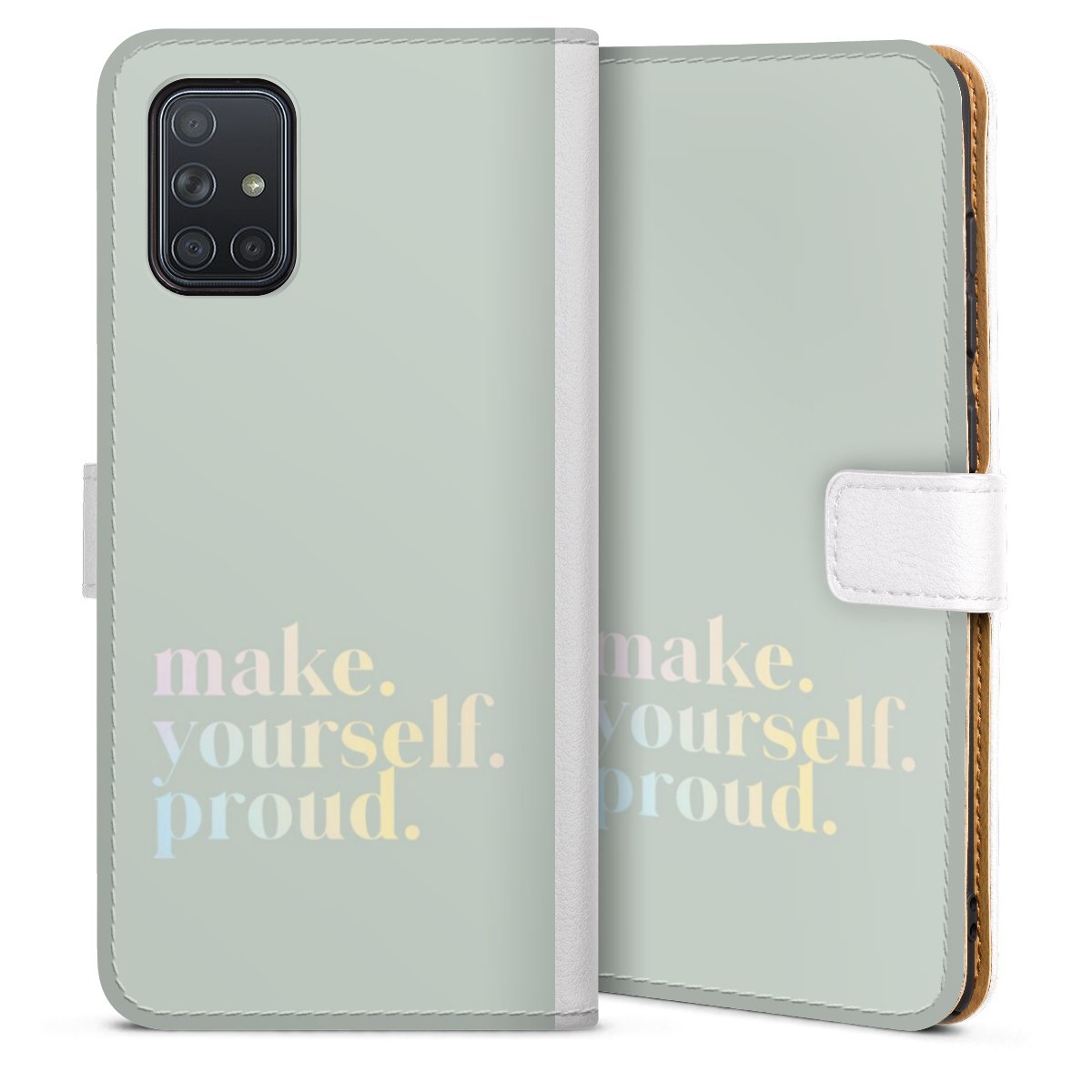 For our Sideflip Case we are using our advanced direct printing technology. The back and frontside are fully printabale, the inside of the phone bag is left unprinted. You can order the phone case without print, printed completely or also with a partial print.