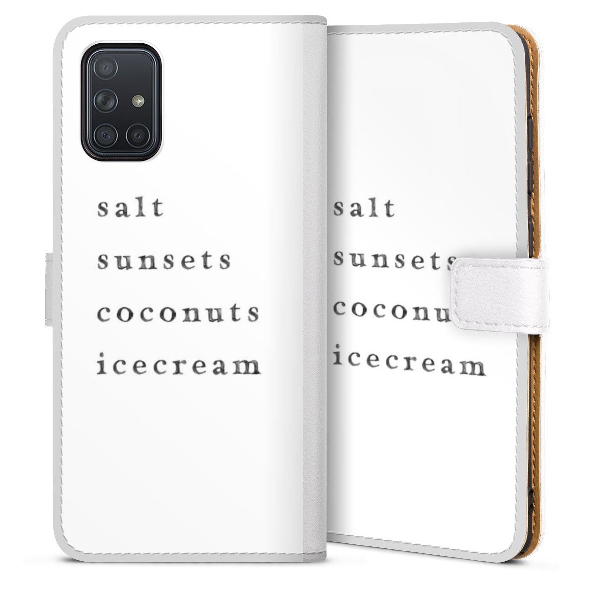 For our Sideflip Case we are using our advanced direct printing technology. The back and frontside are fully printabale, the inside of the phone bag is left unprinted. You can order the phone case without print, printed completely or also with a partial print.