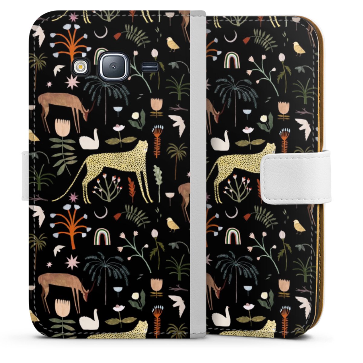 For our Sideflip Case we are using our advanced direct printing technology. The back and frontside are fully printabale, the inside of the phone bag is left unprinted. You can order the phone case without print, printed completely or also with a partial print.