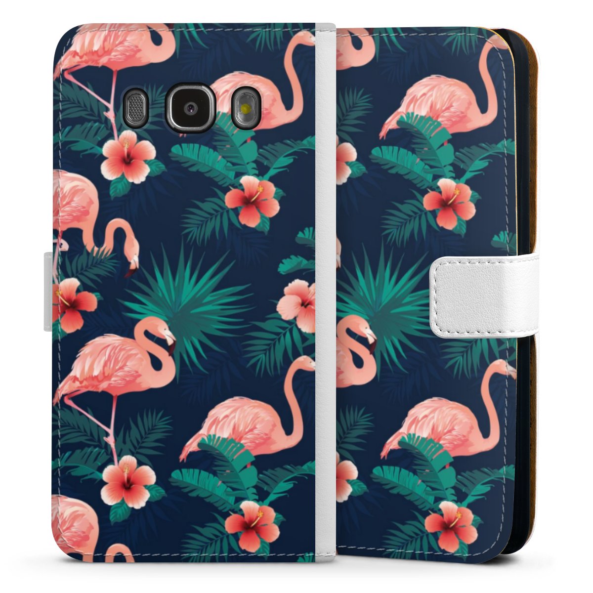For our Sideflip Case we are using our advanced direct printing technology. The back and frontside are fully printabale, the inside of the phone bag is left unprinted. You can order the phone case without print, printed completely or also with a partial print.