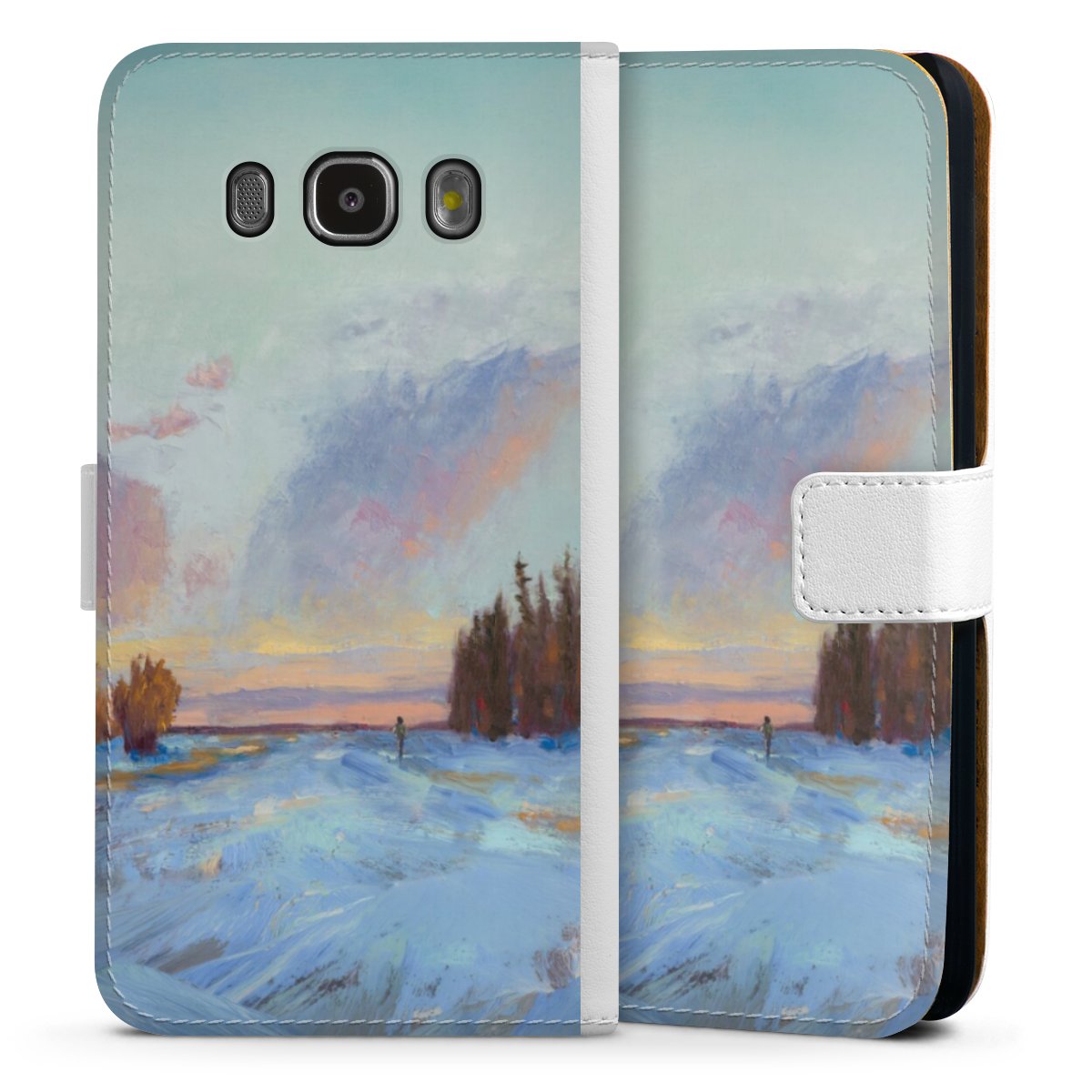 For our Sideflip Case we are using our advanced direct printing technology. The back and frontside are fully printabale, the inside of the phone bag is left unprinted. You can order the phone case without print, printed completely or also with a partial print.