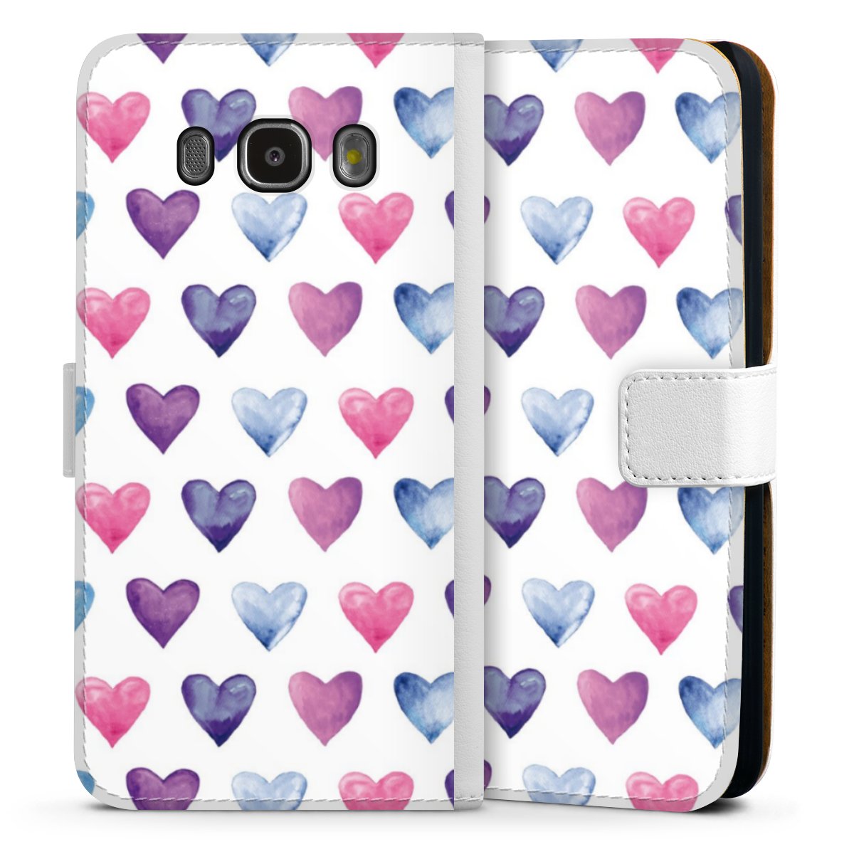 For our Sideflip Case we are using our advanced direct printing technology. The back and frontside are fully printabale, the inside of the phone bag is left unprinted. You can order the phone case without print, printed completely or also with a partial print.