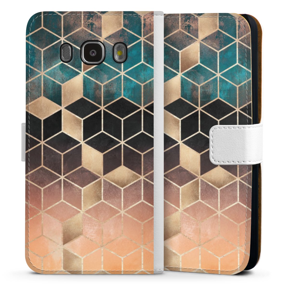 For our Sideflip Case we are using our advanced direct printing technology. The back and frontside are fully printabale, the inside of the phone bag is left unprinted. You can order the phone case without print, printed completely or also with a partial print.