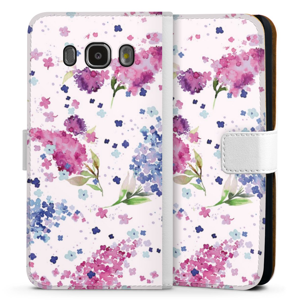 For our Sideflip Case we are using our advanced direct printing technology. The back and frontside are fully printabale, the inside of the phone bag is left unprinted. You can order the phone case without print, printed completely or also with a partial print.