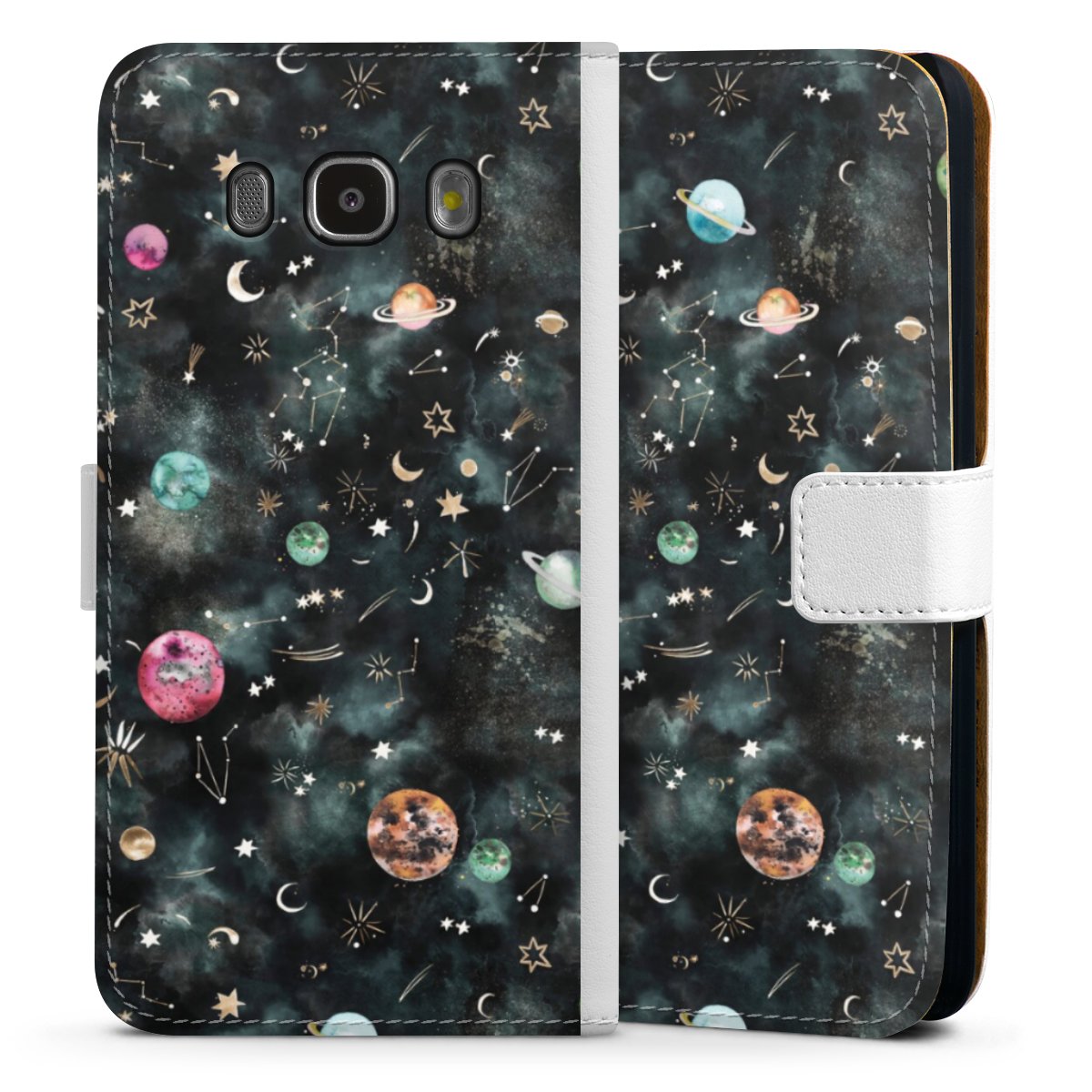 For our Sideflip Case we are using our advanced direct printing technology. The back and frontside are fully printabale, the inside of the phone bag is left unprinted. You can order the phone case without print, printed completely or also with a partial print.