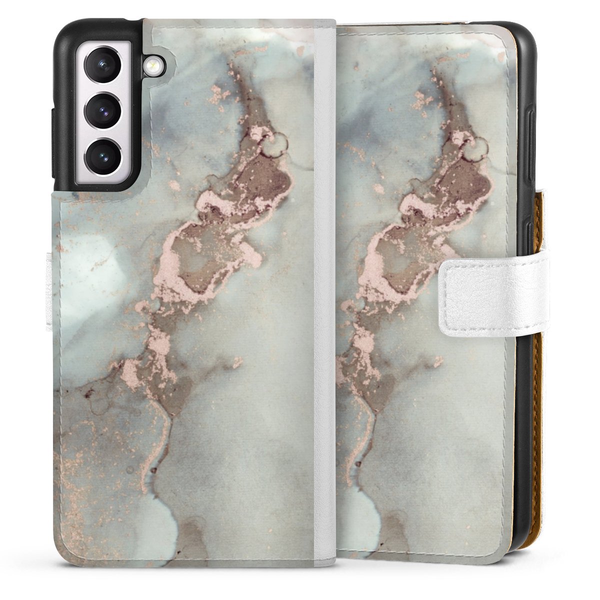 For our Sideflip Case we are using our advanced direct printing technology. The back and frontside are fully printabale, the inside of the phone bag is left unprinted. You can order the phone case without print, printed completely or also with a partial print.
