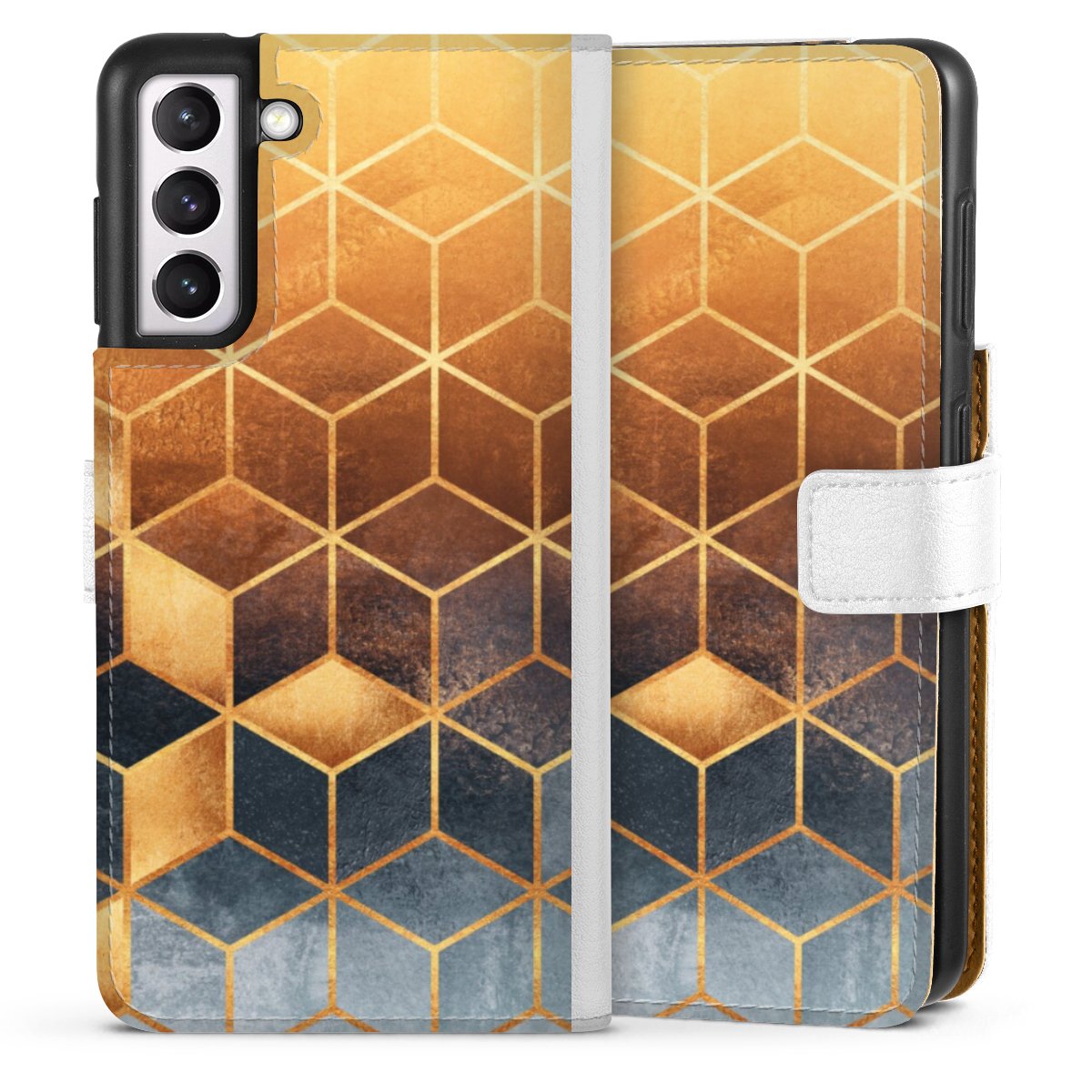 For our Sideflip Case we are using our advanced direct printing technology. The back and frontside are fully printabale, the inside of the phone bag is left unprinted. You can order the phone case without print, printed completely or also with a partial print.