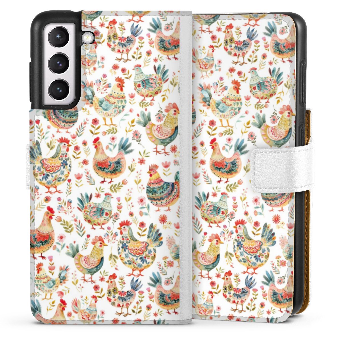 For our Sideflip Case we are using our advanced direct printing technology. The back and frontside are fully printabale, the inside of the phone bag is left unprinted. You can order the phone case without print, printed completely or also with a partial print.