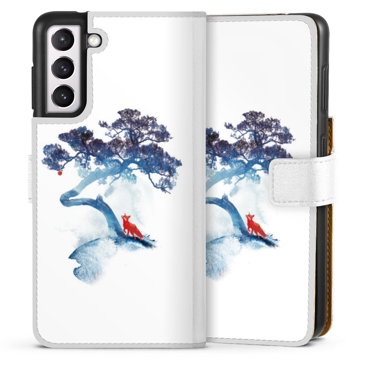 For our Sideflip Case we are using our advanced direct printing technology. The back and frontside are fully printabale, the inside of the phone bag is left unprinted. You can order the phone case without print, printed completely or also with a partial print.