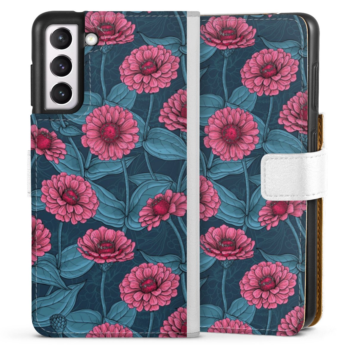 For our Sideflip Case we are using our advanced direct printing technology. The back and frontside are fully printabale, the inside of the phone bag is left unprinted. You can order the phone case without print, printed completely or also with a partial print.