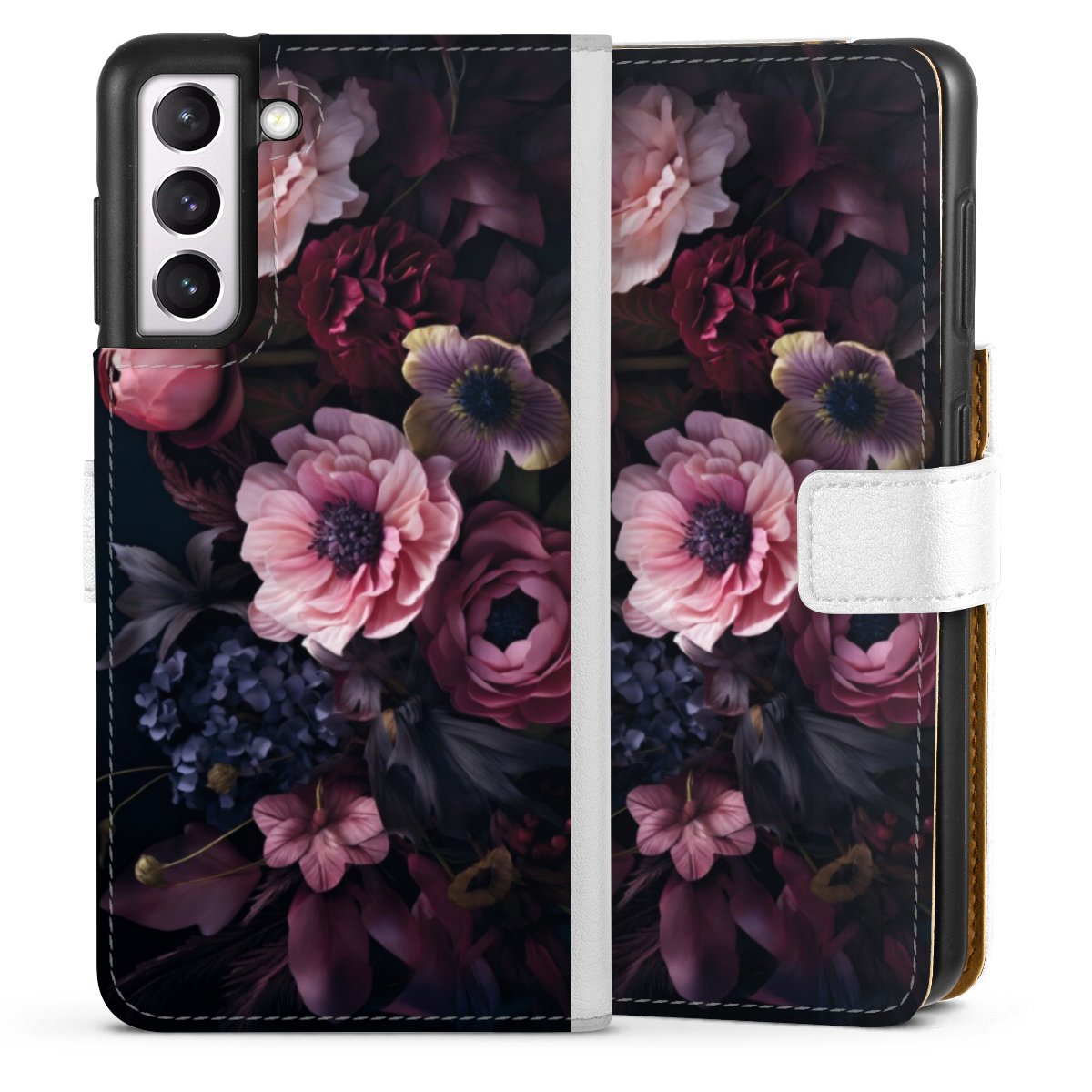 For our Sideflip Case we are using our advanced direct printing technology. The back and frontside are fully printabale, the inside of the phone bag is left unprinted. You can order the phone case without print, printed completely or also with a partial print.