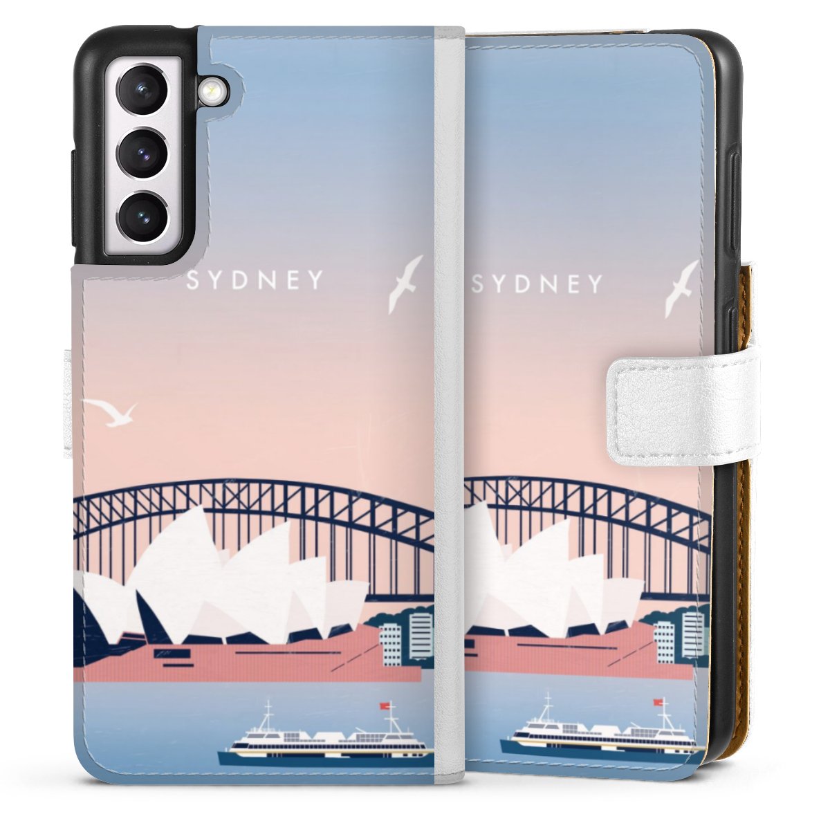 For our Sideflip Case we are using our advanced direct printing technology. The back and frontside are fully printabale, the inside of the phone bag is left unprinted. You can order the phone case without print, printed completely or also with a partial print.