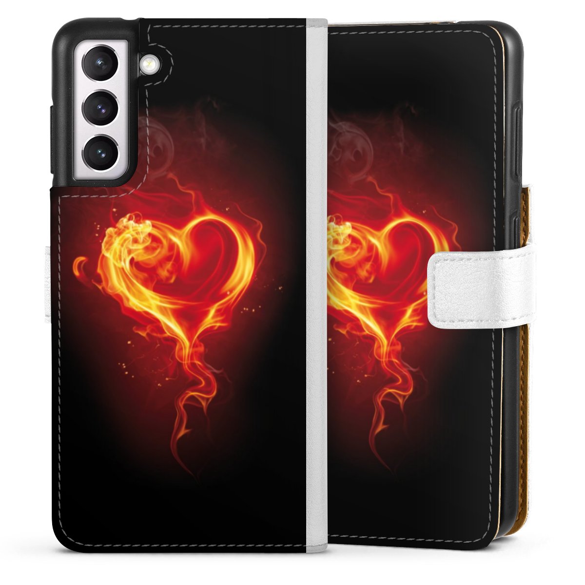 For our Sideflip Case we are using our advanced direct printing technology. The back and frontside are fully printabale, the inside of the phone bag is left unprinted. You can order the phone case without print, printed completely or also with a partial print.