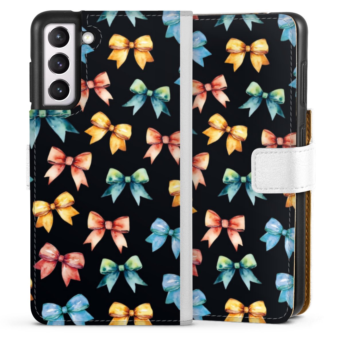 For our Sideflip Case we are using our advanced direct printing technology. The back and frontside are fully printabale, the inside of the phone bag is left unprinted. You can order the phone case without print, printed completely or also with a partial print.