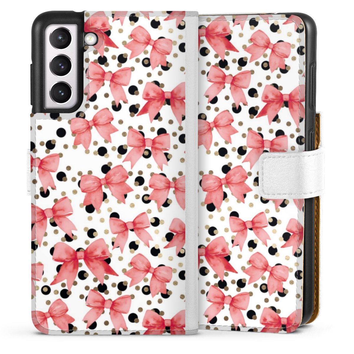 For our Sideflip Case we are using our advanced direct printing technology. The back and frontside are fully printabale, the inside of the phone bag is left unprinted. You can order the phone case without print, printed completely or also with a partial print.
