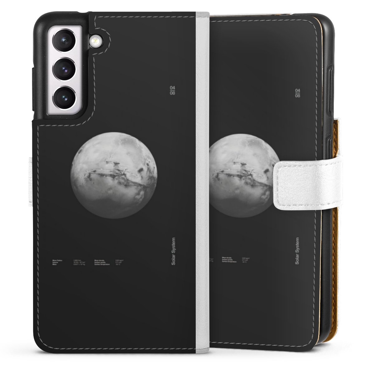 For our Sideflip Case we are using our advanced direct printing technology. The back and frontside are fully printabale, the inside of the phone bag is left unprinted. You can order the phone case without print, printed completely or also with a partial print.