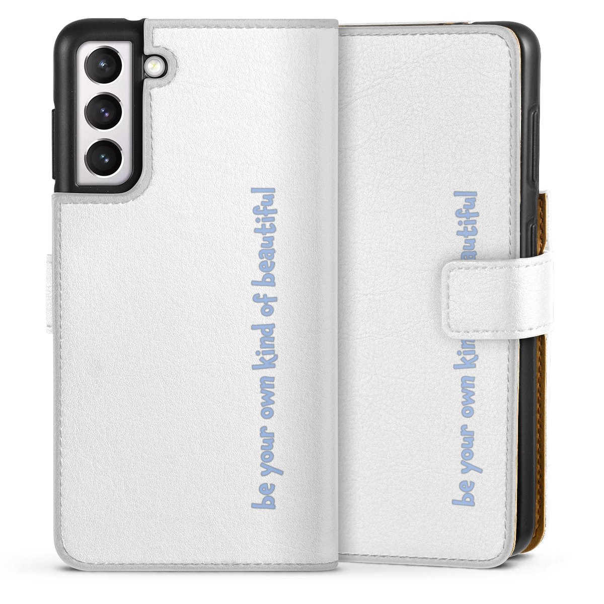 For our Sideflip Case we are using our advanced direct printing technology. The back and frontside are fully printabale, the inside of the phone bag is left unprinted. You can order the phone case without print, printed completely or also with a partial print.