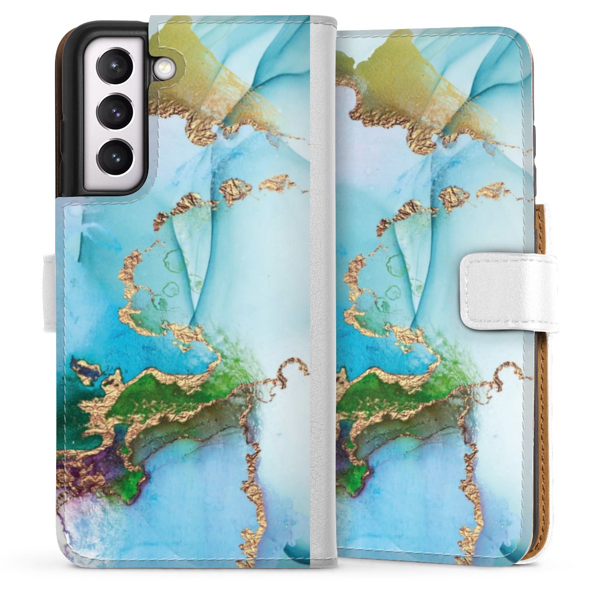 For our Sideflip Case we are using our advanced direct printing technology. The back and frontside are fully printabale, the inside of the phone bag is left unprinted. You can order the phone case without print, printed completely or also with a partial print.