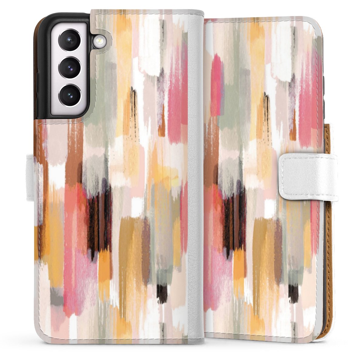 For our Sideflip Case we are using our advanced direct printing technology. The back and frontside are fully printabale, the inside of the phone bag is left unprinted. You can order the phone case without print, printed completely or also with a partial print.