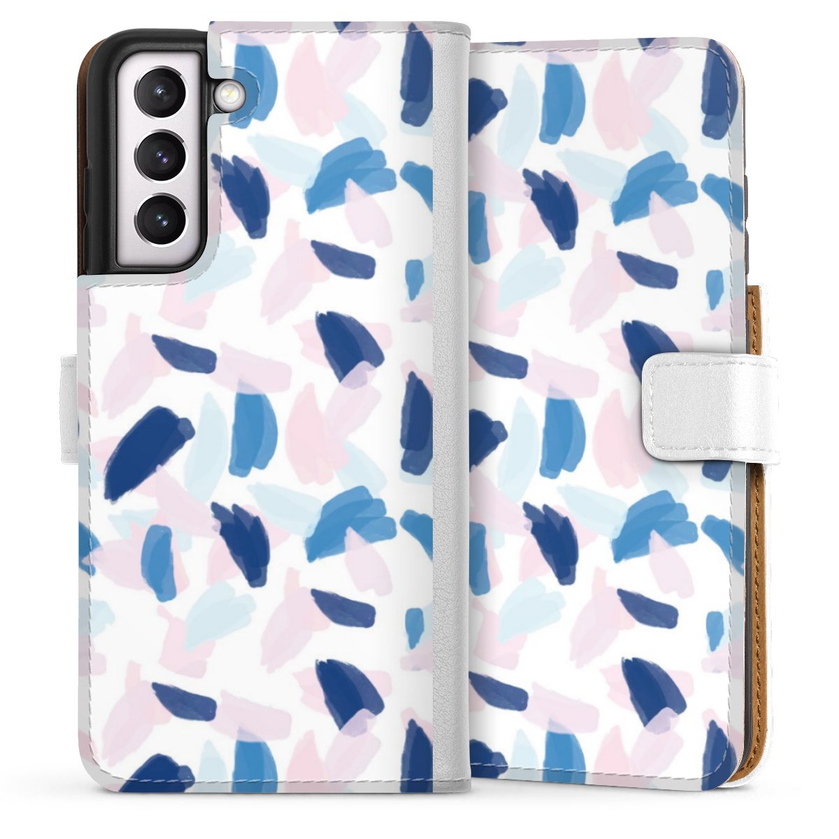 For our Sideflip Case we are using our advanced direct printing technology. The back and frontside are fully printabale, the inside of the phone bag is left unprinted. You can order the phone case without print, printed completely or also with a partial print.
