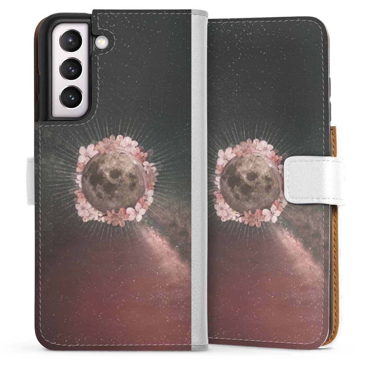 For our Sideflip Case we are using our advanced direct printing technology. The back and frontside are fully printabale, the inside of the phone bag is left unprinted. You can order the phone case without print, printed completely or also with a partial print.