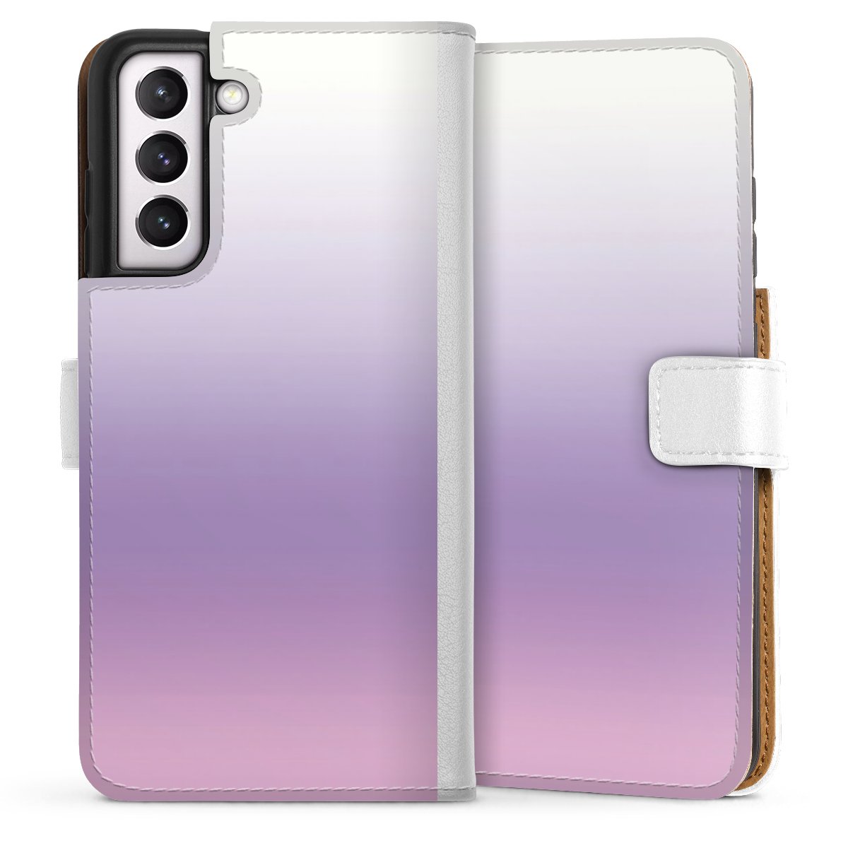 For our Sideflip Case we are using our advanced direct printing technology. The back and frontside are fully printabale, the inside of the phone bag is left unprinted. You can order the phone case without print, printed completely or also with a partial print.