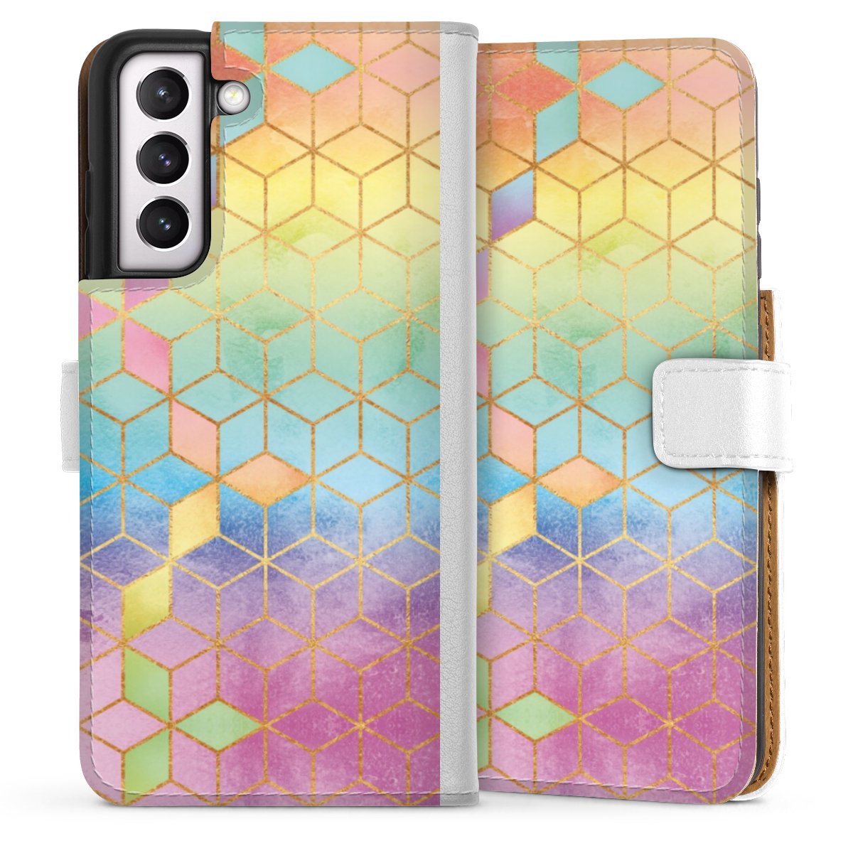 For our Sideflip Case we are using our advanced direct printing technology. The back and frontside are fully printabale, the inside of the phone bag is left unprinted. You can order the phone case without print, printed completely or also with a partial print.