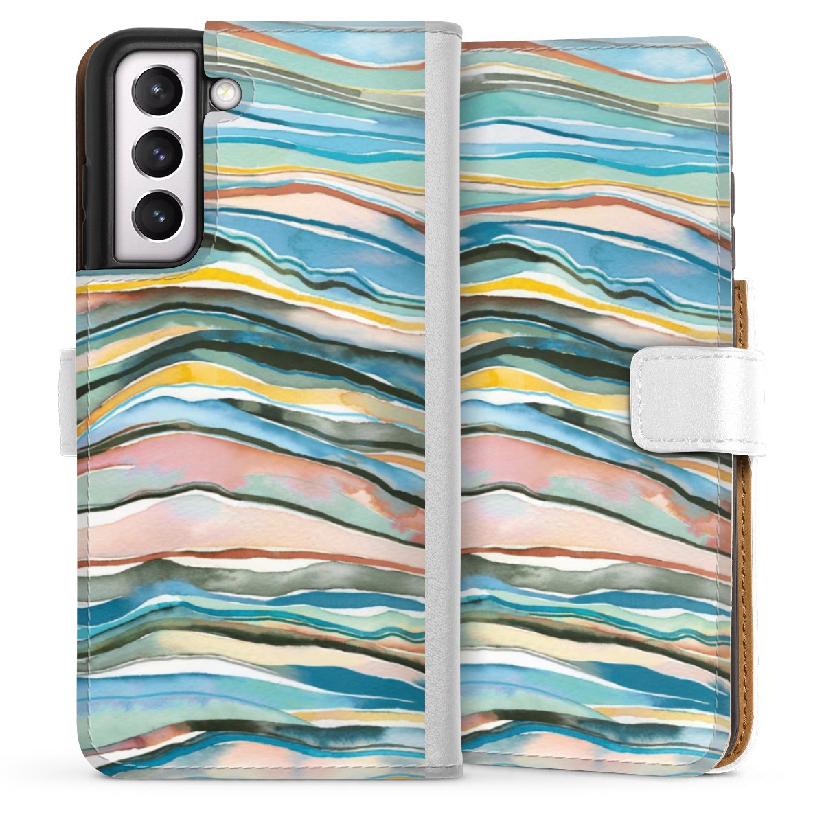 For our Sideflip Case we are using our advanced direct printing technology. The back and frontside are fully printabale, the inside of the phone bag is left unprinted. You can order the phone case without print, printed completely or also with a partial print.