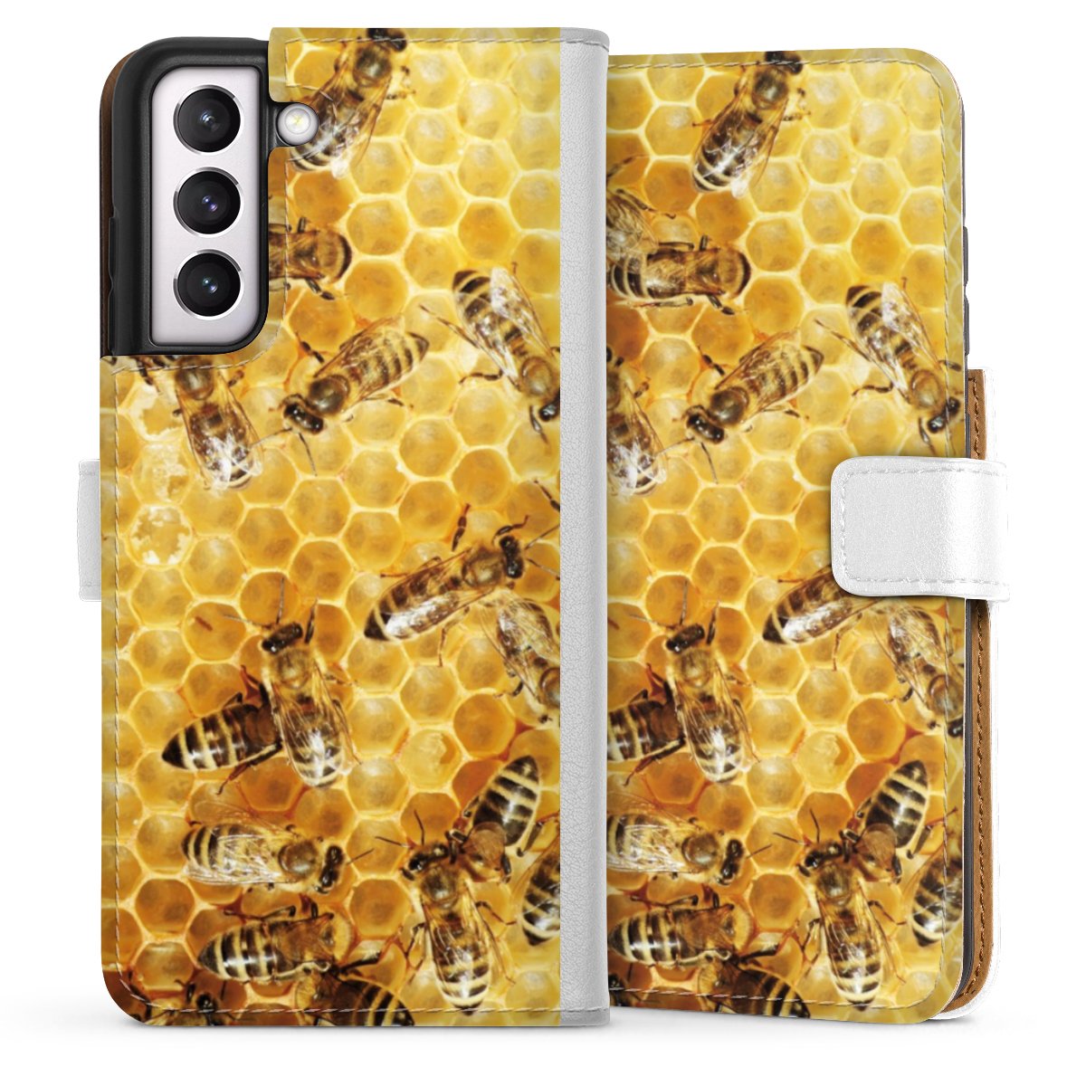 For our Sideflip Case we are using our advanced direct printing technology. The back and frontside are fully printabale, the inside of the phone bag is left unprinted. You can order the phone case without print, printed completely or also with a partial print.