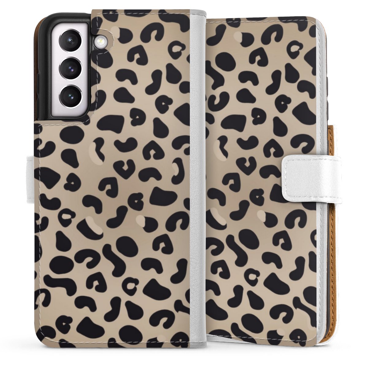For our Sideflip Case we are using our advanced direct printing technology. The back and frontside are fully printabale, the inside of the phone bag is left unprinted. You can order the phone case without print, printed completely or also with a partial print.