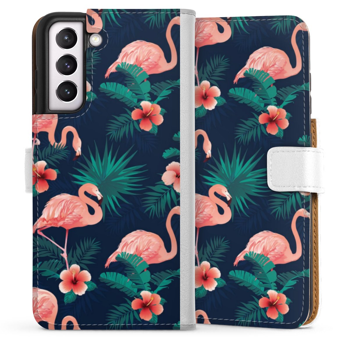 For our Sideflip Case we are using our advanced direct printing technology. The back and frontside are fully printabale, the inside of the phone bag is left unprinted. You can order the phone case without print, printed completely or also with a partial print.
