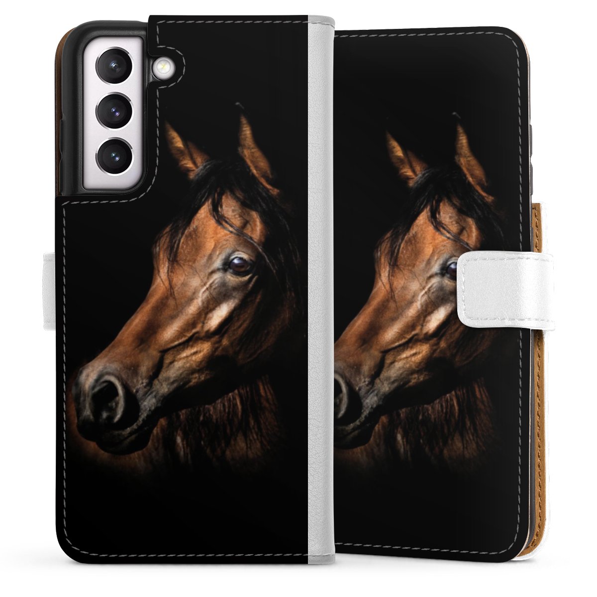 For our Sideflip Case we are using our advanced direct printing technology. The back and frontside are fully printabale, the inside of the phone bag is left unprinted. You can order the phone case without print, printed completely or also with a partial print.