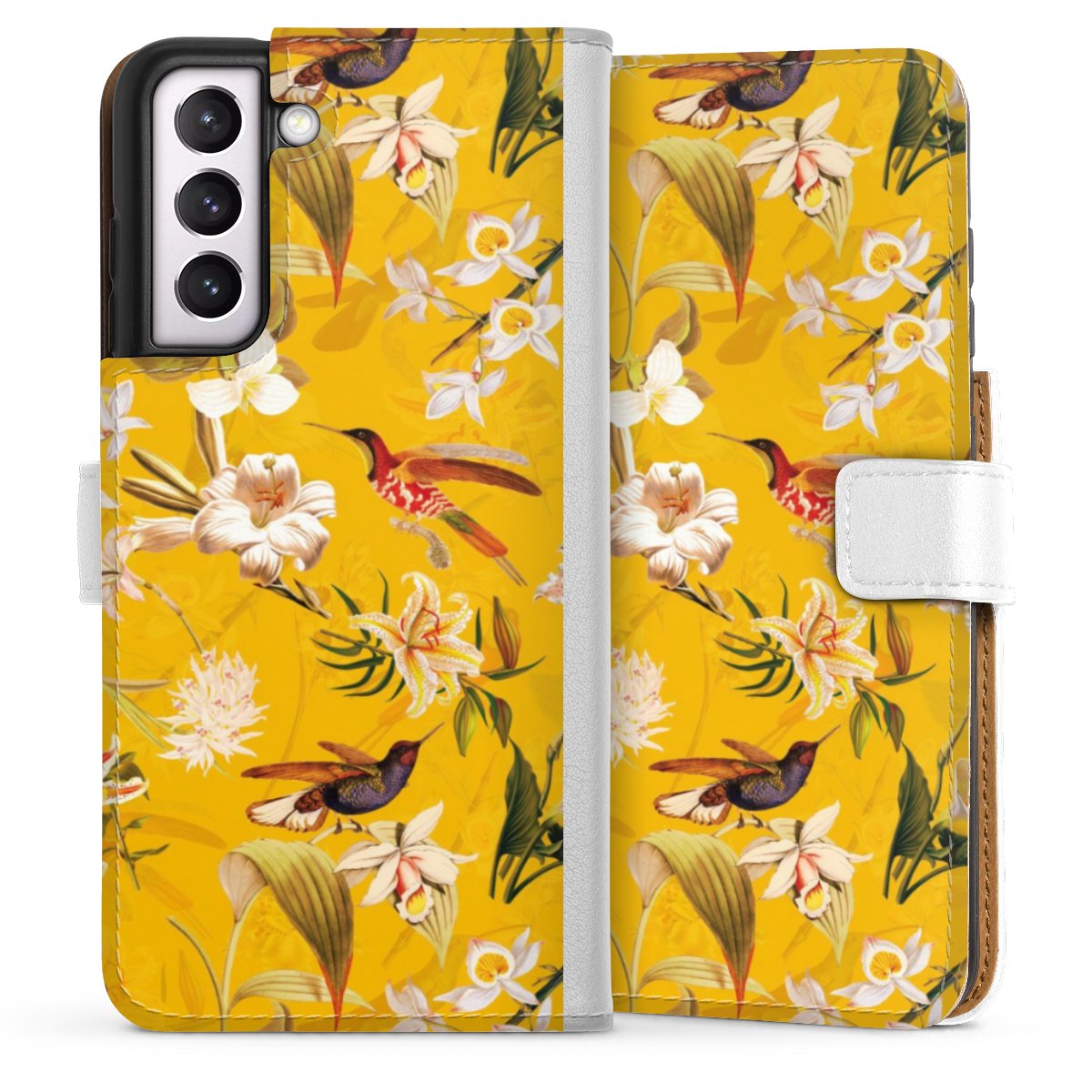 For our Sideflip Case we are using our advanced direct printing technology. The back and frontside are fully printabale, the inside of the phone bag is left unprinted. You can order the phone case without print, printed completely or also with a partial print.