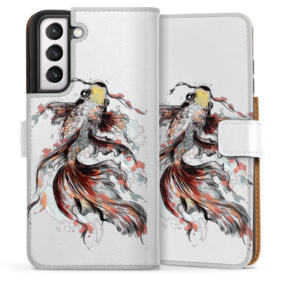 For our Sideflip Case we are using our advanced direct printing technology. The back and frontside are fully printabale, the inside of the phone bag is left unprinted. You can order the phone case without print, printed completely or also with a partial print.
